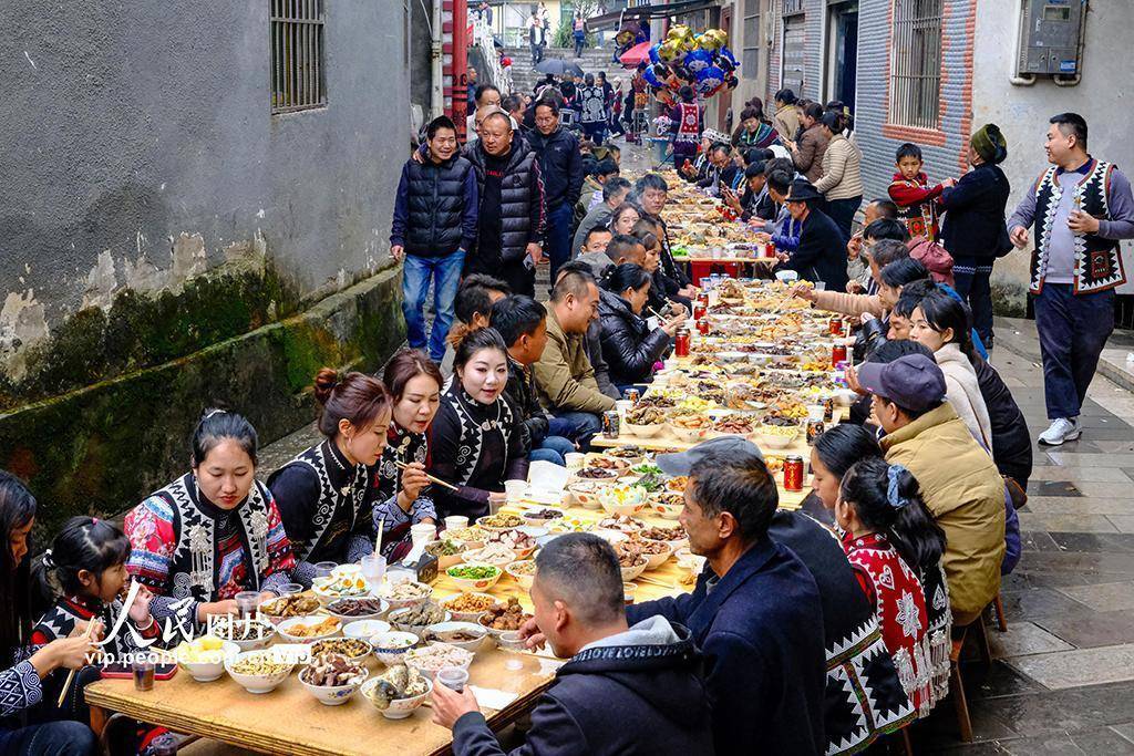 近年来,元阳县在持续加强保护与传承的基础上,积极推动长街宴与旅游产业融合,为当地乡村旅游注入新活力,实现社会效益与经济效益双提升。张洪科摄(人民图片网)