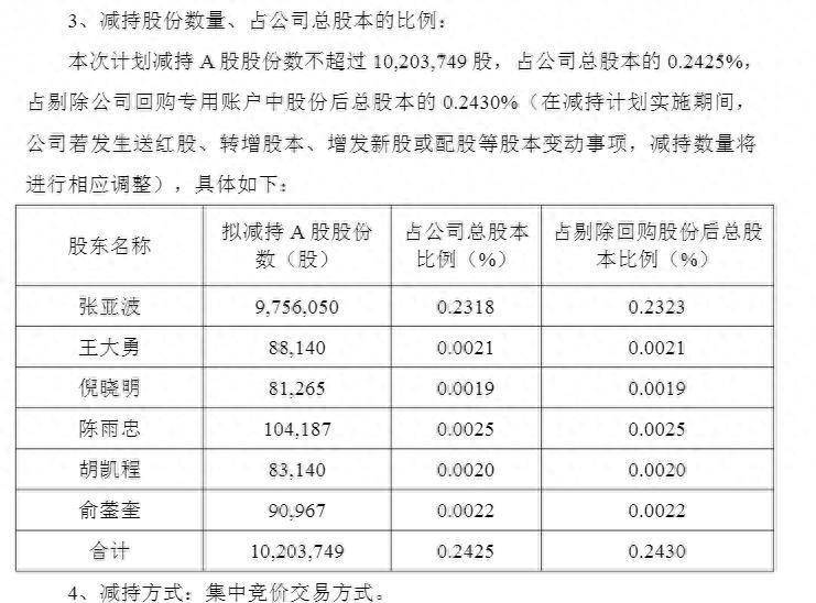 公告显示,三花智控本次拟减持的股东包括实际控制人、董事长张亚波,董事王大勇、倪晓明、陈雨忠,董事会秘书胡凯程,财务总监俞蓥奎,6人拟合计减持1020.37万股,占公司总股本的0.2425%。减持原因为个人资金需求。